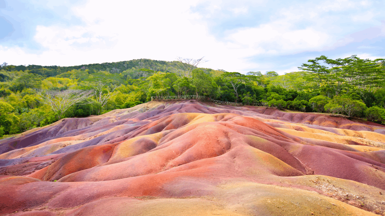 ⦿ The adventure continues at the extraordinary Chamarel Seven Colored Earth Geopark. This 8.5-hectare natural wonder features rippling sand dunes in seven striking hues – red, brown, violet, green, blue, purple and yellow – shaped over 600 million years. A geological marvel and a true spectacle of nature.